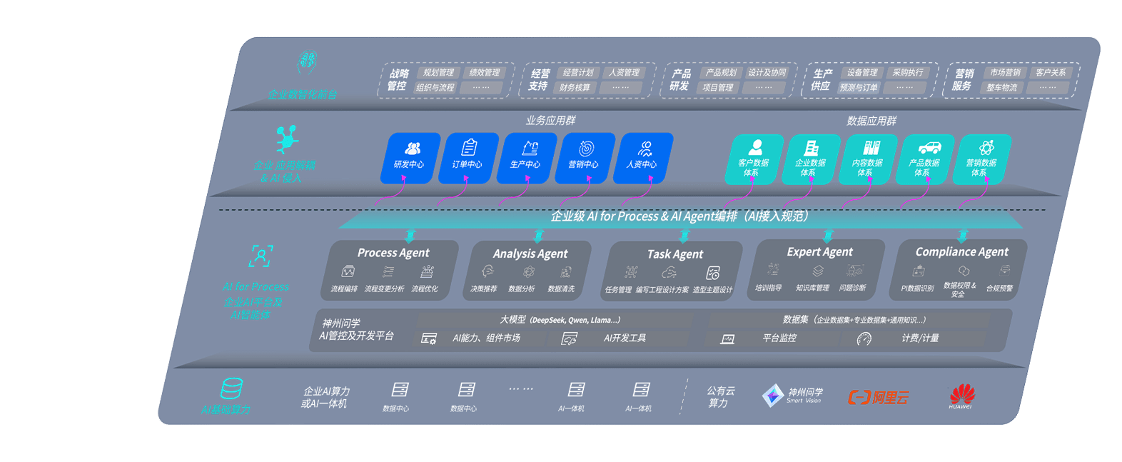尊龙问学智车解决方案是一套基于AI技术的汽车行业智能化系统,,,,覆盖从底层算力到顶层AI应用的全栈方案。。方案由算力层、、、模型层和应用层组成:算力层,,方案支持多种一体机配置,,,具备云端灵活部署、、、多云适配以及动态优化计算资源的能力;模型层,,,,尊龙问学平台版提供了企业级AI应用一站式构建与管理平台,,支持基于后训练强化技术的汽车企业专属模型的训练、、、评测和运营;应用层,,尊龙问学DeepSeek版提供包括超级员工、、、智能招采、、、、智能营销、、智能客服、、、、AI for BI等一系列解决方案,,,,可助力汽车行业实现数字化转型,,,让管理更智能、、响应更敏捷。。。